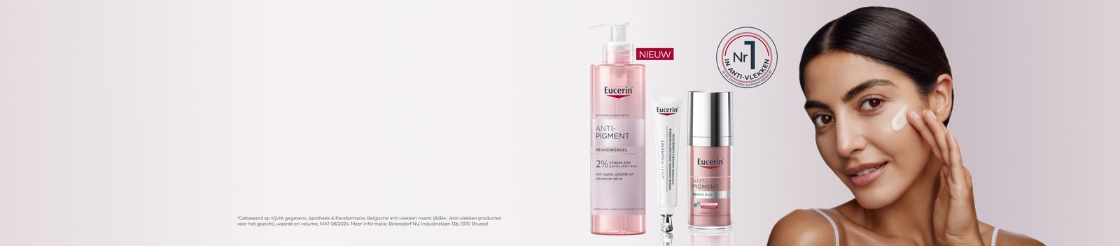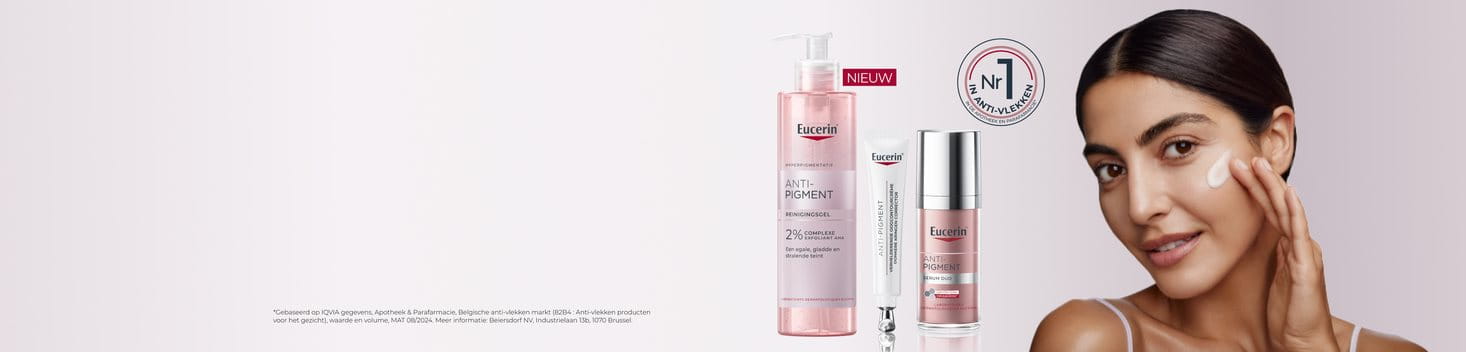 De zon, hormonale invloeden en ouderdom kunnen allemaal hyperpigmentatie veroorzaken: door pigmentvlekken en ouderdomsvlekken (ook wel zonnevlekken genoemd) maakt de huid een ongelijkmatige indruk. Het Eucerin Anti-Pigment assortiment is speciaal ontwikkeld om hyperpigmentatie tegen te gaan, voor een egale en stralende huid