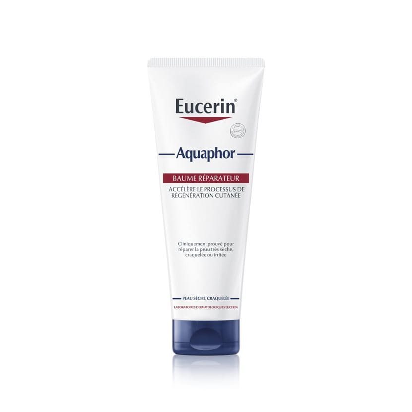 Eucerin Aquaphor Herstellende Zalf geeft de droge tot zeer droge, gebarsten en geïrriteerd aanvoelende huid de SOS-verzorging die ze nodig heeft. De zalf zonder water vormt een zachte, semi-occlusieve beschermende barrière over de huid die de natuurlijke overdracht van waterdamp en zuurstof van en naar de huid ondersteunt, waardoor de huid kan 'ademen' en haar natuurlijke barrièrefunctie kan ondersteunen. De Aquaphor zalf bevat Glycerine en Panthenol. Glycerine is een effectieve vochtinbrenger die water aantrekt en helpt om het in de huid te houden. Het werkt in parallel met Panthenol, wat helpt om regeneratie te versnellen, het herstellend vermogen te ondersteunen en tegelijkertijd de huid hydrateert. Eucerin Aquaphor Herstellende Zalf is ongeparfumeerd en bevat geen conserveringsmiddelen en is klinisch en dermatologisch bewezen ter ondersteuning van het herstellend vermogen van de zeer droge, gebarsten en geïrriteerd aanvoelende huid.