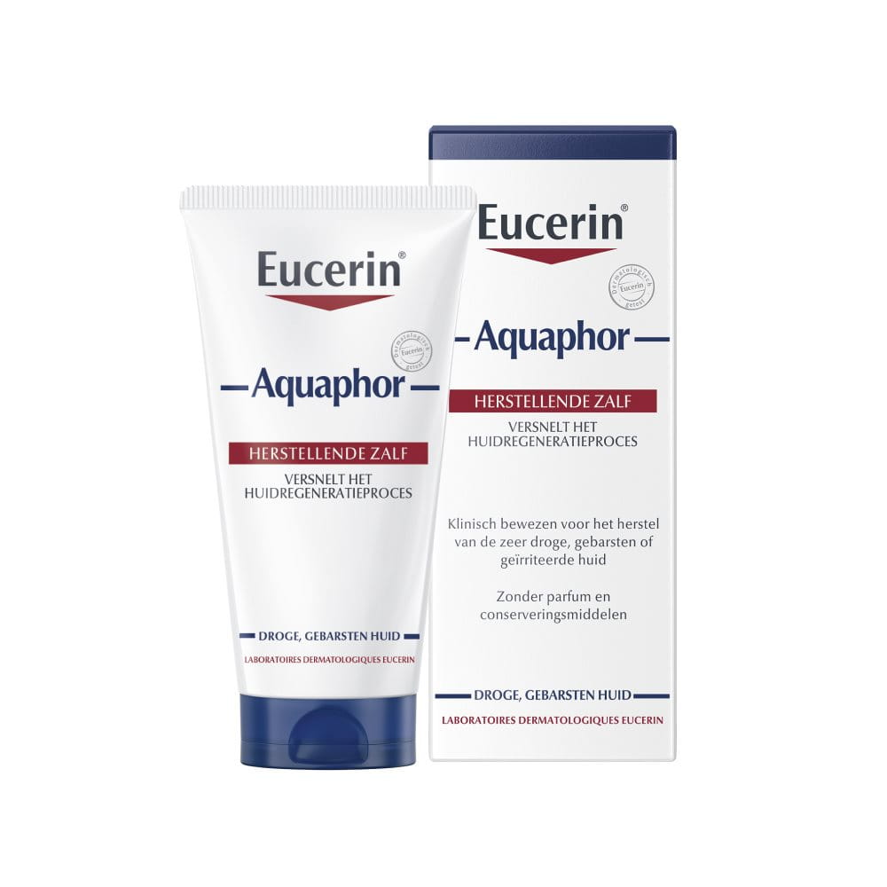 Eucerin Aquaphor Herstellende Zalf geeft de zeer droge en geïrriteerd aanvoelende huid de SOS-verzorging die ze nodig heeft. De huidherstellende en hydraterende crème vormt een semi-occlusieve beschermende barrière over de huid die de natuurlijke overdracht van waterdamp en zuurstof van en naar de huid ondersteunt, waardoor de huid kan 'ademen' en haar natuurlijke barrièrefunctie kan ondersteunen. De Glycerine van de herstellende balsem is een effectieve vochtinbrenger die water aantrekt en helpt om het in de huid te houden. De Glycerine werkt in parallel met Panthenol, wat helpt de regeneratie te versnellen, het herstellend vermogen te ondersteunen en tegelijkertijd de huid hydrateert.