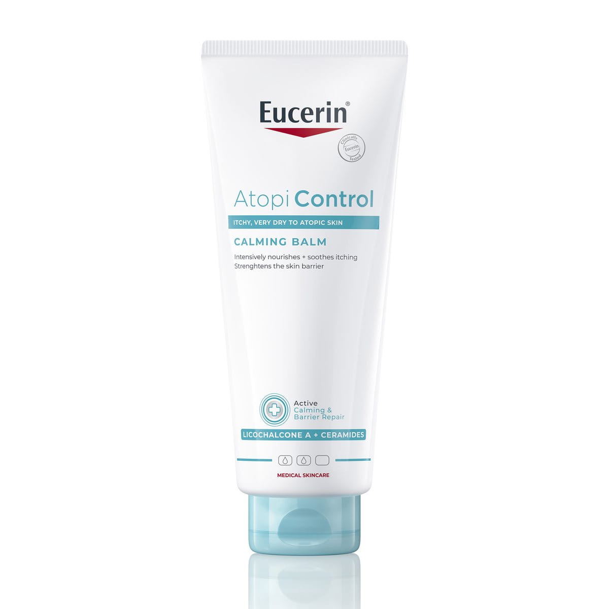 De Eucerin AtopiControl Balsem is een lichaamsbalsem voor dagelijks gebruik en is speciaal geformuleerd om de huid met een irritatiegevoel en jeukerig gevoel te verzachten en intensief te hydrateren. De lichte, maar voedende olie-in-water balsem bevat verzachtend Licochalcone A, Ceramiden en Sheaboter om de huidbarrière te versterken en droogheid en een jeukerig gevoel te verminderen. De balsem kan ook worden gebruikt als hydraterende verzorging tegelijkertijd met de AtopiControl Intensief Kalmerende Crèm en je gebruikelijke medicatie (raadpleeg een arts voor gebruik in combinatie met lokale geneesmiddelen). De balsem voor de huid met neiging tot atopisch eczeem hydrateert onmiddellijk om de huid zacht en soepel te maken. Bij regelmatig gebruik verbetert de toestand van de huid merkbaar.