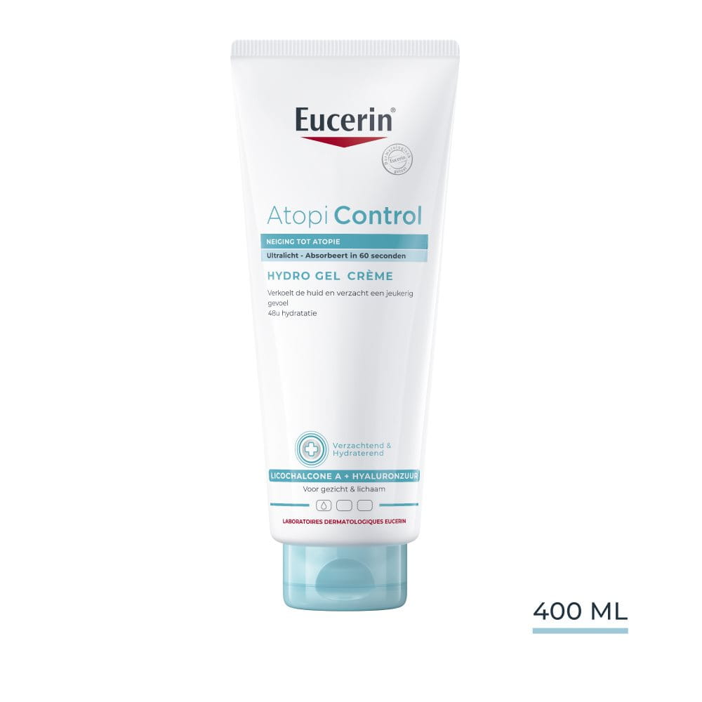 Eucerin AtopiControl Hydro Gel-Crème is een dagelijkse basisverzorging voor het lichaam die speciaal is ontwikkeld om de huid met jeukerig en irritatiegevoel te verzachten en intensief te hydrateren. De combinatie van Licochalcone A, Hyaluronzuur en Ceramiden biedt onmiddellijke verzachting, vermindert een jeukerig gevoel van de huid met neiging tot eczeem, en laat de huid langdurig aangenaam aanvoelen. Bij regelmatig gebruik verbetert de huidtoestand aanzienlijk, en voelt de huid zachter en gladder aan.