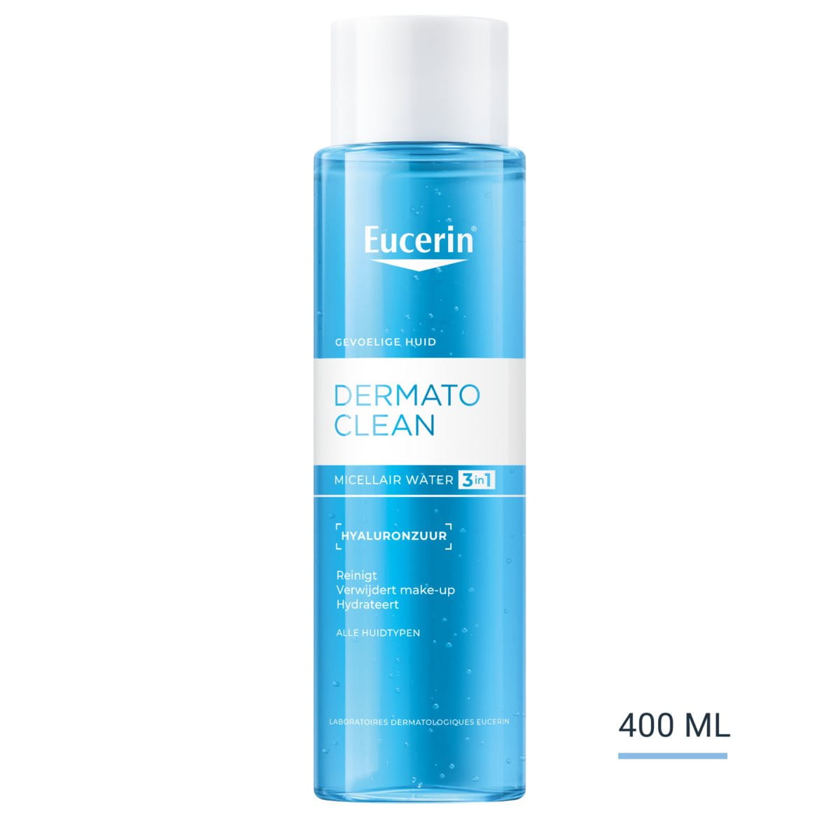 Eucerin® DermatoClean Micellair Water 3 in 1 is een milde, effectieve gezichtsreiniger die grondig maar op milde wijze reinigt en onzuiverheden en make-up van het gezicht en de ogen verwijdert. De formule met Hyaluronzuur en andere hydraterende ingrediënten droogt de huid niet uit. Ongeparfumeerd.