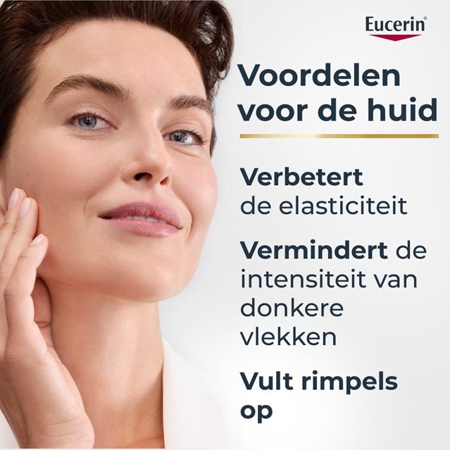 Van Eucerin Hyaluron-Filler + Elasticity 3D Serum is klinisch en dermatologisch bewezen dat het ouderdomsvlekken vermindert, diepe rimpels zichtbaar opvult, de elasticiteit verbetert en de huid er stralend en verjongd laat uitzien en aanvoelen.