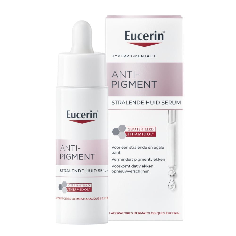 Maar er zijn ook gespecialiseerde producten als de hyperpigmentatie al is opgetreden. De Eucerin Anti-Pigment hyperpigmentatiecrèmes helpen tegen donkere plekken dankzij het gepatenteerde ingrediënt Thiamodol, dat de aanmaak van tyrosinase tegengaat – een essentieel onderdeel van het ontstaan van melanine. Zo wordt het ontstaan van donkere plekken verminderd en wordt de huid wetenschappelijk bewezen helderder en minder oneffen.