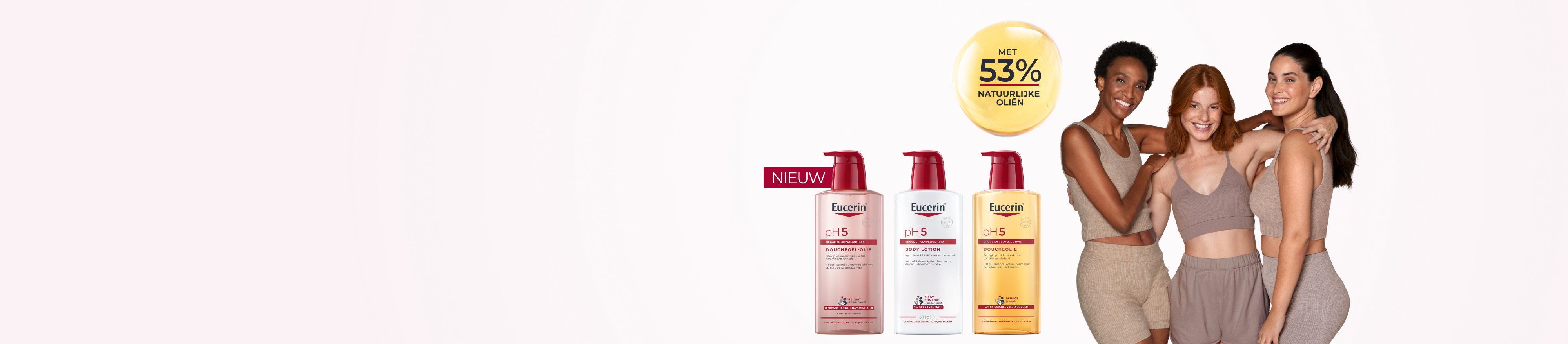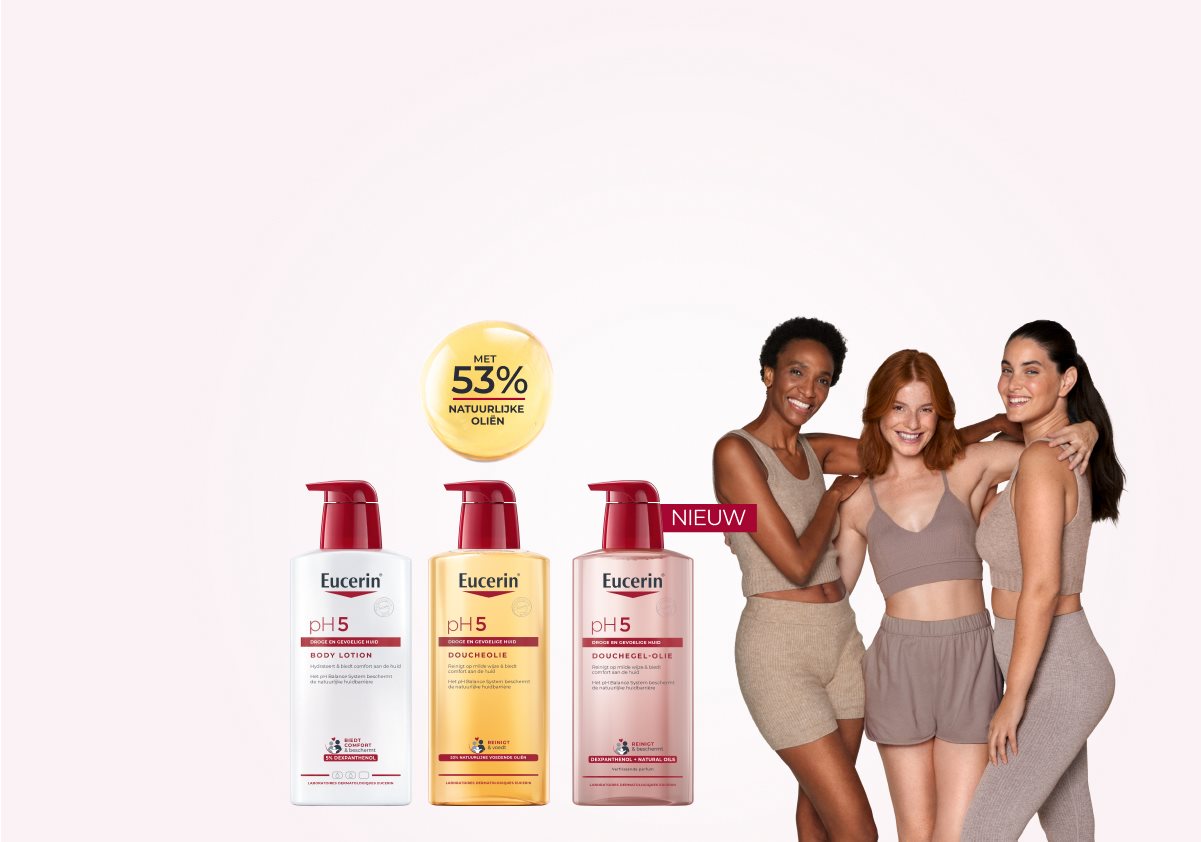 Het Eucerin pH5-assortiment is speciaal samengesteld om te voorzien in de behoeften van een droge, gevoelige huid. Het unieke Eucerin pH-balanssysteem respecteert het optimale pH-niveau van de huid en helpt de natuurlijke afweer van de huid te versterken, waardoor deze beter bestand is tegen omgevingsinvloeden en de gevoeligheid vermindert. Veel van de producten bevatten ook Dexpanthenol.