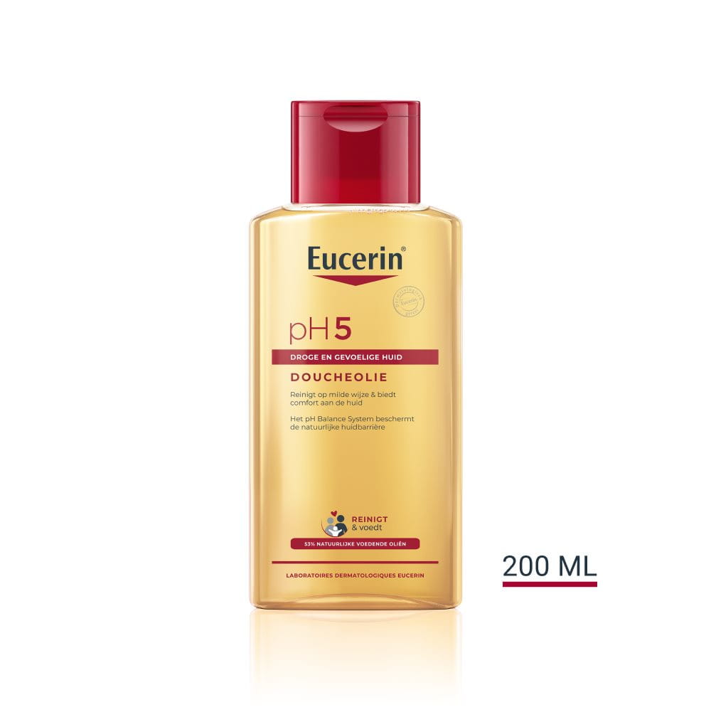 De gevoelige huid heeft een milde reiniging nodig om de weerstand van de huid tegen dagelijkse invloeden van buitenaf te behouden. Geef comfort aan uw huid en bescherm deze met de pH5 Doucheolie van Eucerin. Geef uw huid een nieuw gevoel van welzijn. De pH5 Doucheolie, met natuurlijke oliën en Dexpanthenol, reinigt de gevoelige huid op milde wijze. Dit product respecteert het microbioom van de huid door het natuurlijke evenwicht ervan niet te beïnvloeden. De huid wordt op milde wijze gereinigd en de pH-waarde wordt gerespecteerd. De huid voelt zacht en soepel aan, wordt beschermd tegen uitdroging en voelt weer comfortabel aan.
