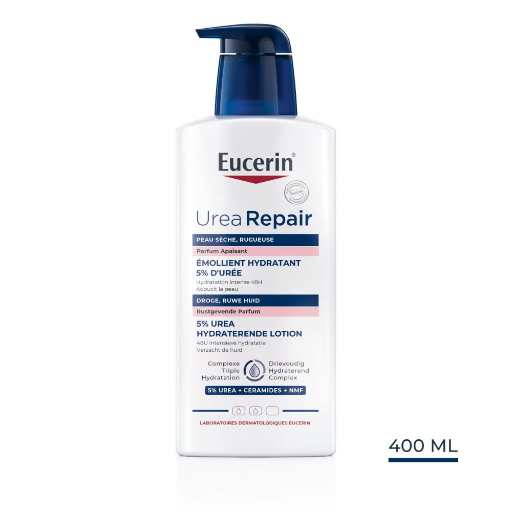 5% Urea Hydraterende Lotion (rustgevend parfum), een licht geparfumeerd product uit de UreaRepair productlijn van Eucerin, combineert een bewezen effectiviteit met een subtiel en rustgevend parfum, dat is geformuleerd om het risico op allergieën te minimaliseren. Door middel van tests is bewezen dat het goed wordt verdragen door de droge, gevoelige huid. Je kunt dus voortaan genieten van het beste van twee werelden, zonder ergens op in te leveren.