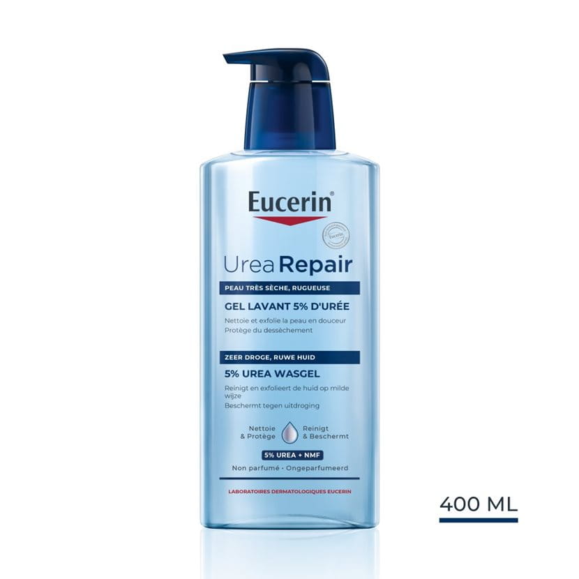 De UreaRepair 5% Urea Wasgel is een reinigingsgel voor het gezicht en het lichaam zonder zeep en parfum, die speciaal is ontwikkeld voor dagelijks gebruik op de zeer droge, ruwe en reactieve huid. Met een unieke combinatie van hydraterende ingrediënten (Urea en andere natuurlijke hydratatiefactoren) reinigt en exfolieert de gel de ruwe huid op milde wijze zonder de huidbarrière te verstoren. De huid is zichtbaar gladder, met een gehydrateerd gevoel.