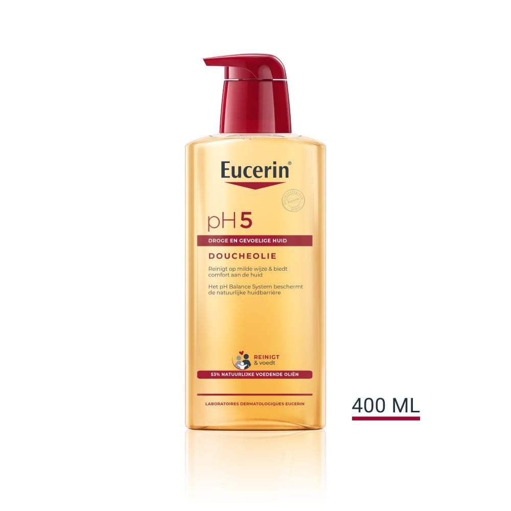 De gevoelige huid heeft een milde reiniging nodig om de weerstand van de huid tegen dagelijkse invloeden van buitenaf te behouden. Geef comfort aan uw huid en bescherm deze met de pH5 Doucheolie van Eucerin. Geef uw huid een nieuw gevoel van welzijn. De pH5 Doucheolie, met natuurlijke oliën en Dexpanthenol, reinigt de gevoelige huid op milde wijze. Dit product respecteert het microbioom van de huid door het natuurlijke evenwicht ervan niet te beïnvloeden. De huid wordt op milde wijze gereinigd en de pH-waarde wordt gerespecteerd. De huid voelt zacht en soepel aan, wordt beschermd tegen uitdroging en voelt weer comfortabel aan.